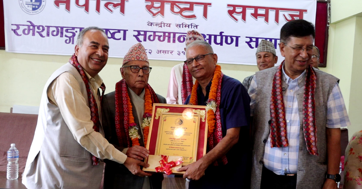 कार्यक्रममा साहित्य साधक रमेशचन्द्र देवकोटा, नेपाल स्रष्टा समाजका अध्यक्ष श्रीओम श्रेष्ठ ‘रोदन’, बागमती प्रदेशसभा सदस्य डा. दिनेशचन्द्र देवकोटालगायतले उनीहरुलाई सम्मान प्रदान गरे ।